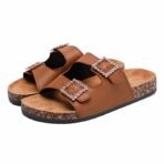 Playa Libre Women Cork Sandals Adjustable Buckle Strap Cork Footbed Sandal Arch Support Casual Slip‑On Outdoor Slide Sandals