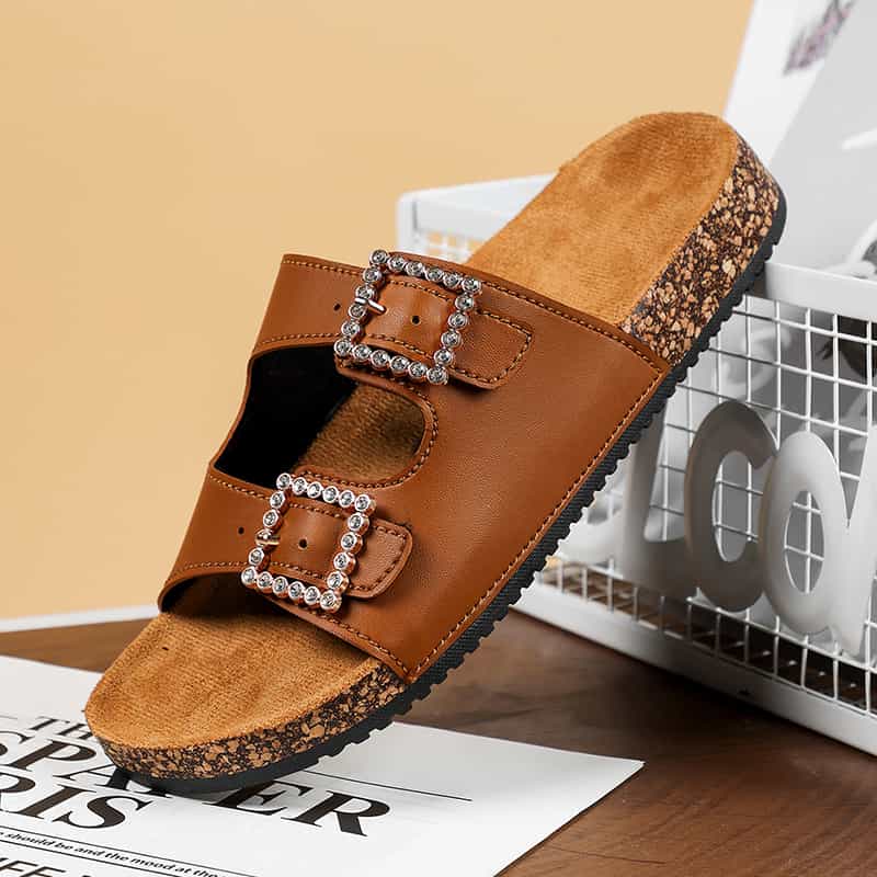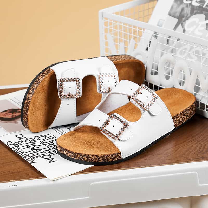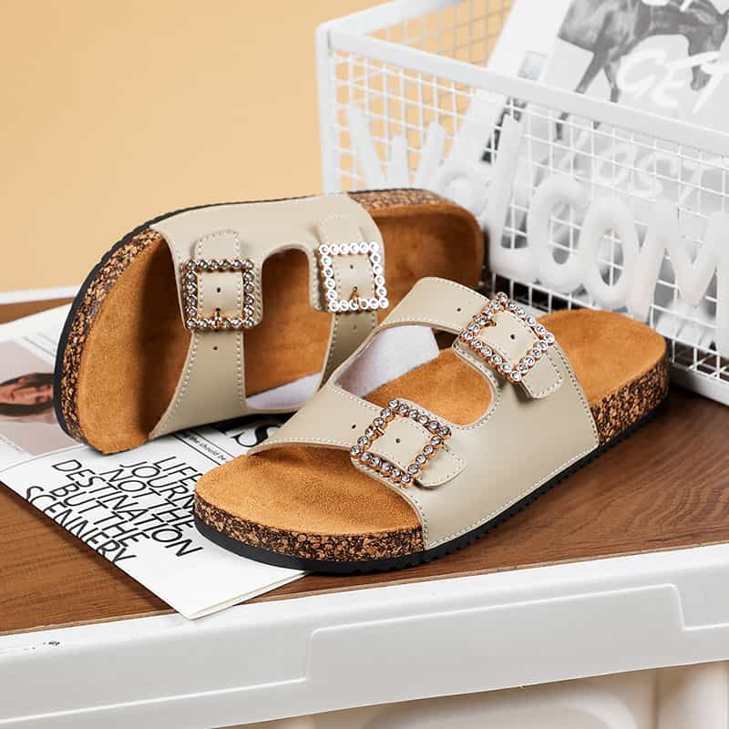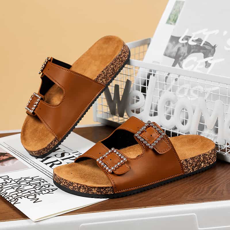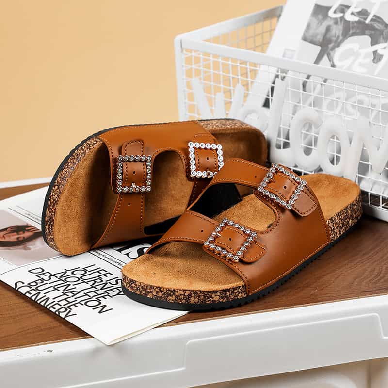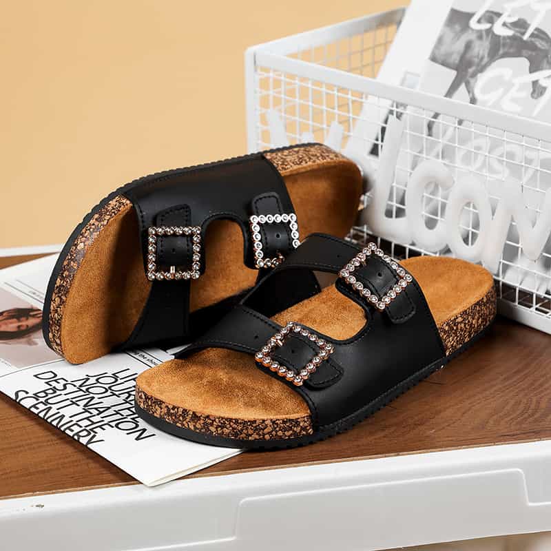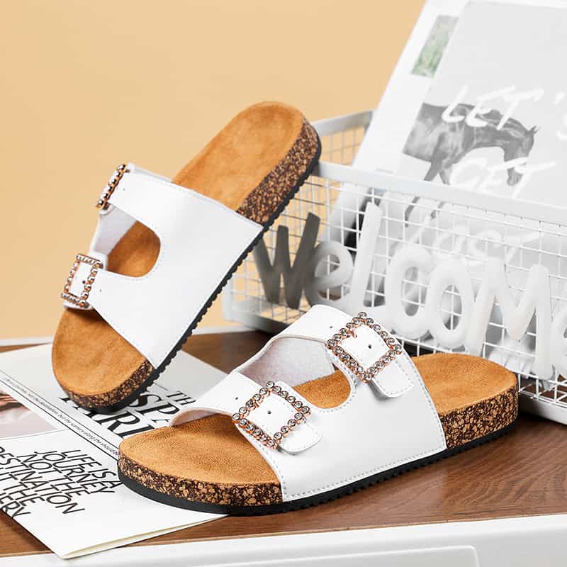 - 𝗙𝗹𝗲𝘅𝗶𝗯𝗹𝗲 𝗖𝗼𝗿𝗸 𝗙𝗼𝗼𝘁𝗯𝗲𝗱 – Experience superior flexibility with the lightweight cork footbed, allowing for natural movement in these womens sandals. Perfect for those who love flat sandals and need a comfortable option for everyday wear.