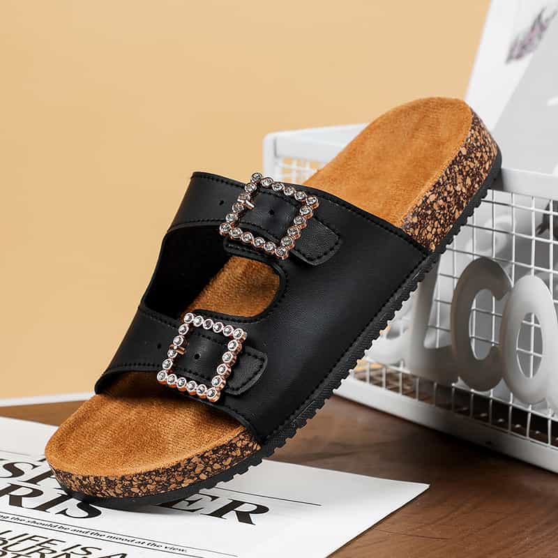 - 𝗣𝗿𝗲𝗺𝗶𝘂𝗺 𝗙𝗮𝘂𝘅 𝗟𝗲𝗮𝘁𝗵𝗲𝗿 𝗨𝗽𝗽𝗲𝗿 – Crafted from high-quality faux leather, featuring a soft lining and adjustable double buckle straps, making these sandals women can trust for a secure and customized fit.