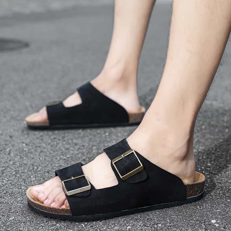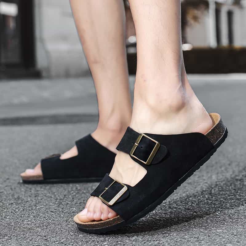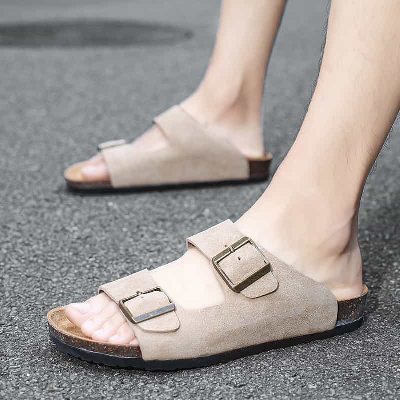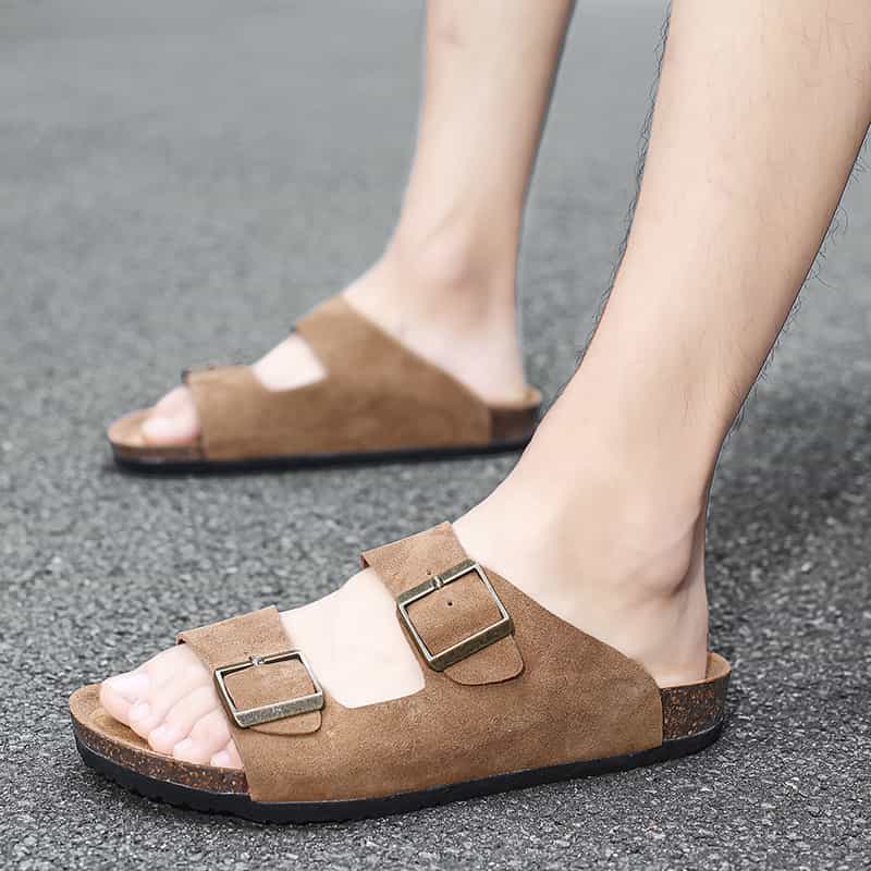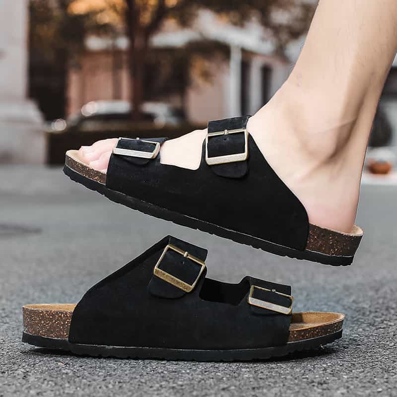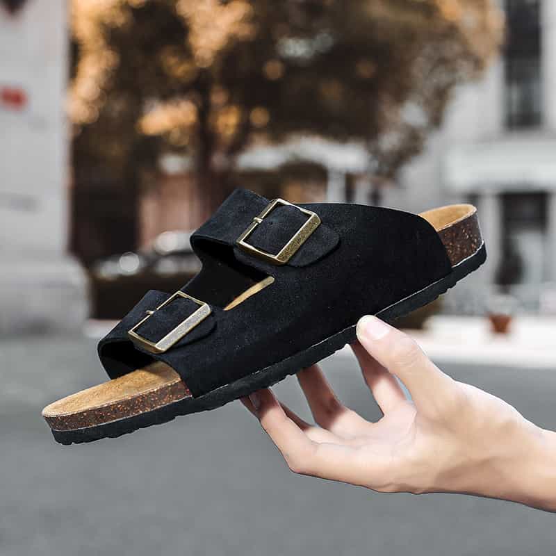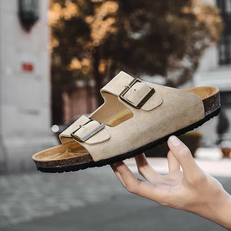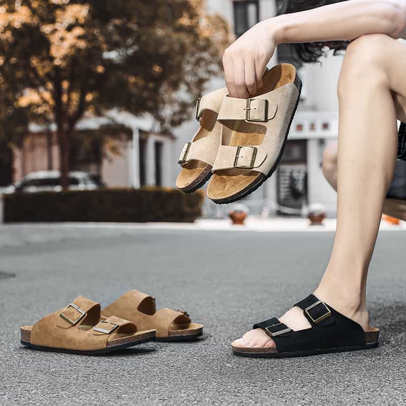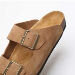 Playa Libre Cork Footbed Sandals for Ladies Comfortable Double Buckle Slip-On with Genuine Suede Footbed & Arch Support Slides for Women Footwear