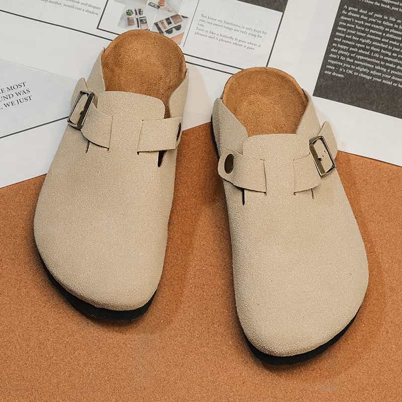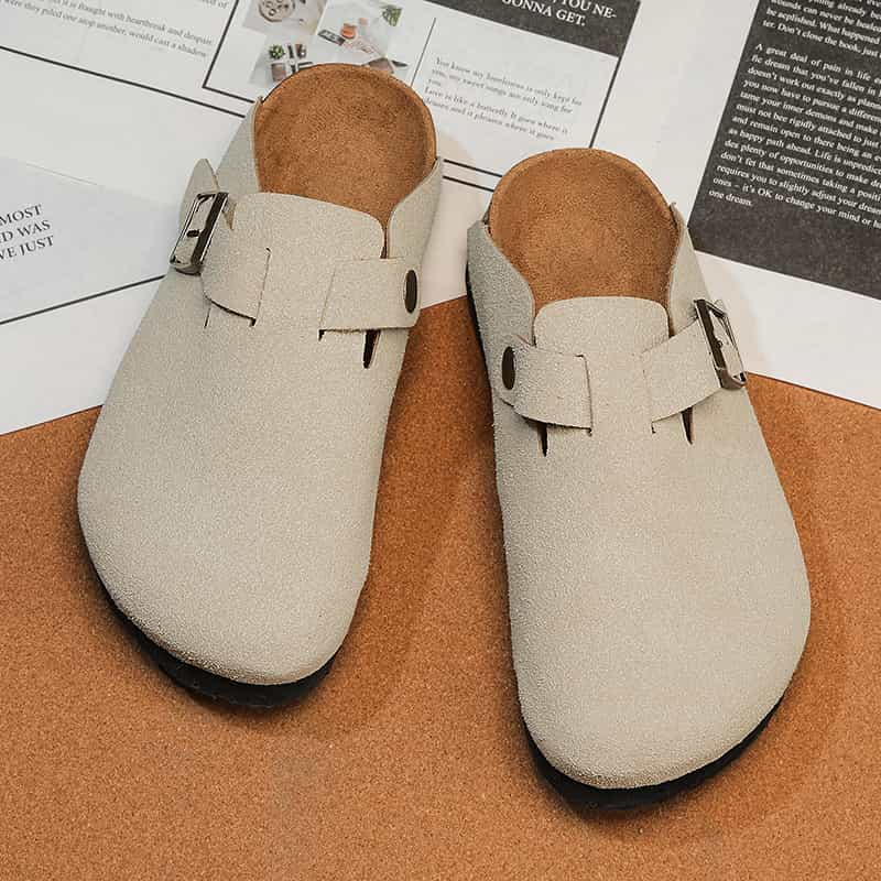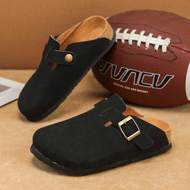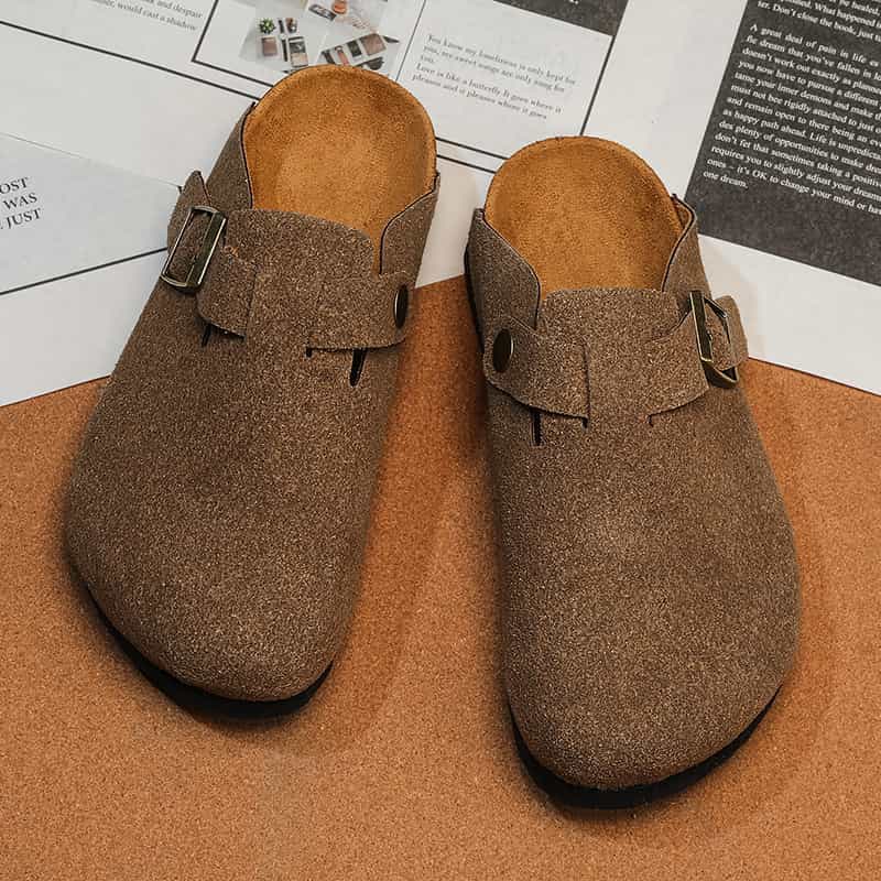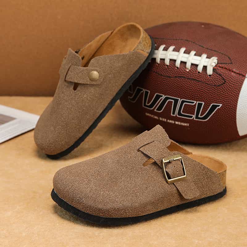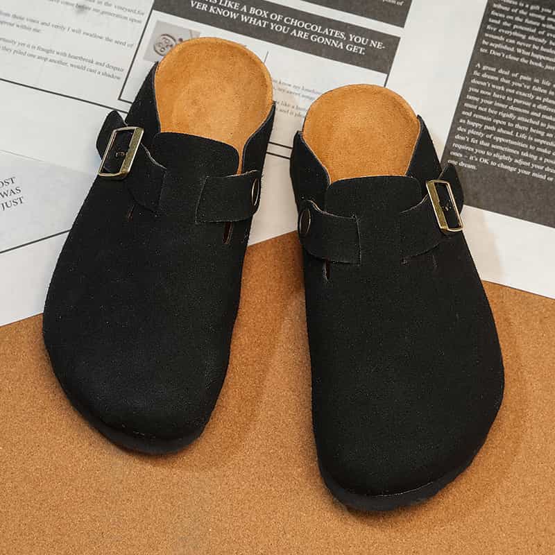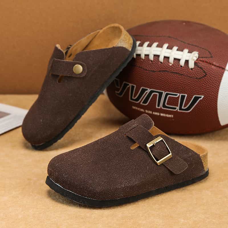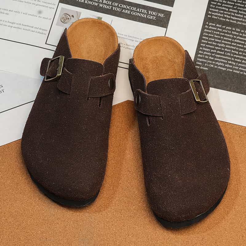 Playa Libre Womens Suede Clogs Mens Genuine Leather Mules Cork Footbed Sandals with Arch Support